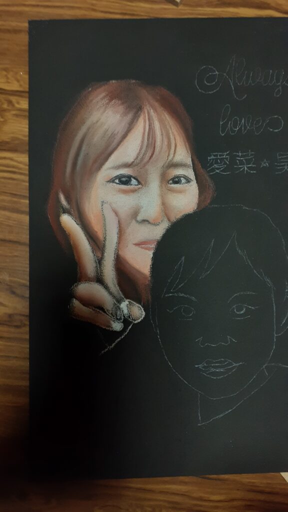 写真を参考にしながら、似顔絵を仕上げていきました。