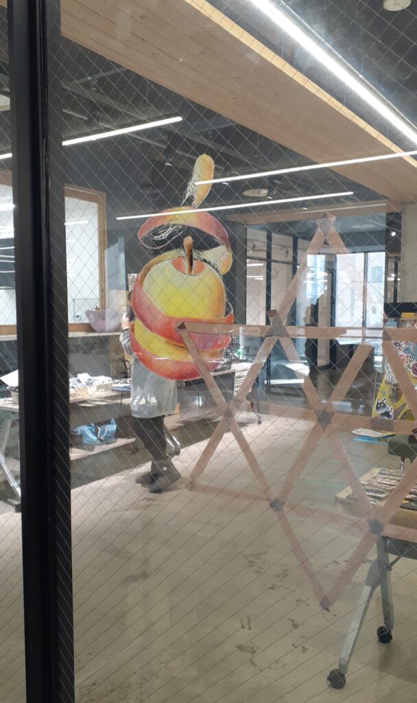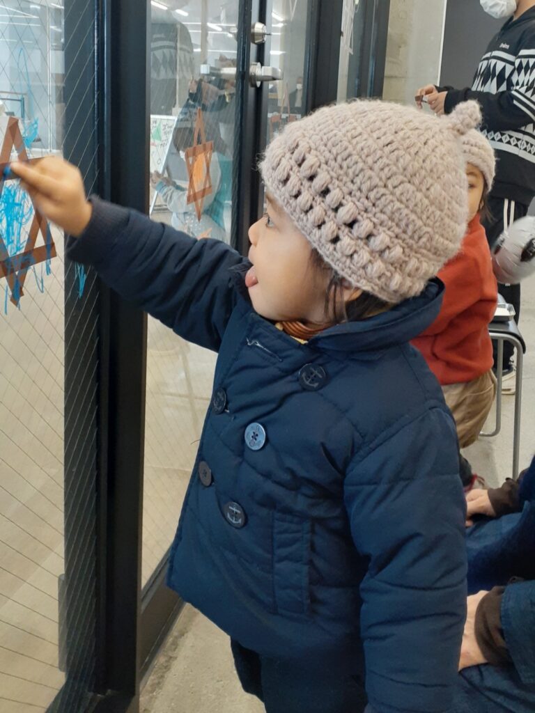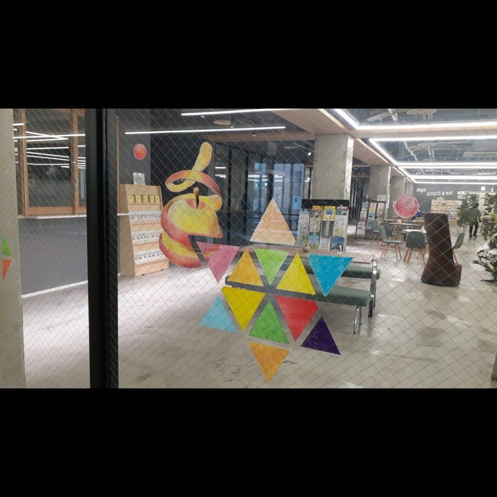 2階のウィンドウにて、キットパスを使ってワークショップを行いました。