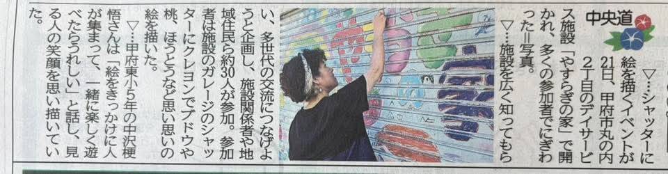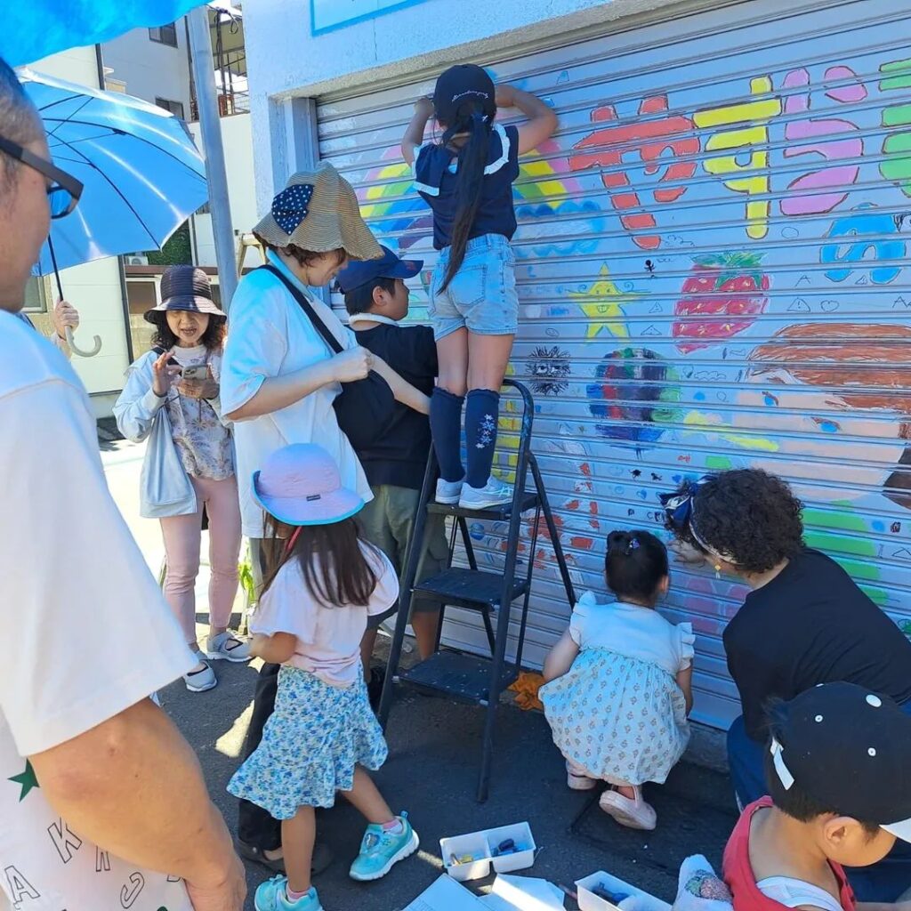 好きな物を次々と描き、あれよあれよと言う間にシャッターが華やかに変身していきました。