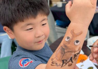 会場のガラスを華やかにして欲しいとご依頼をいただきました。