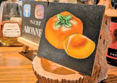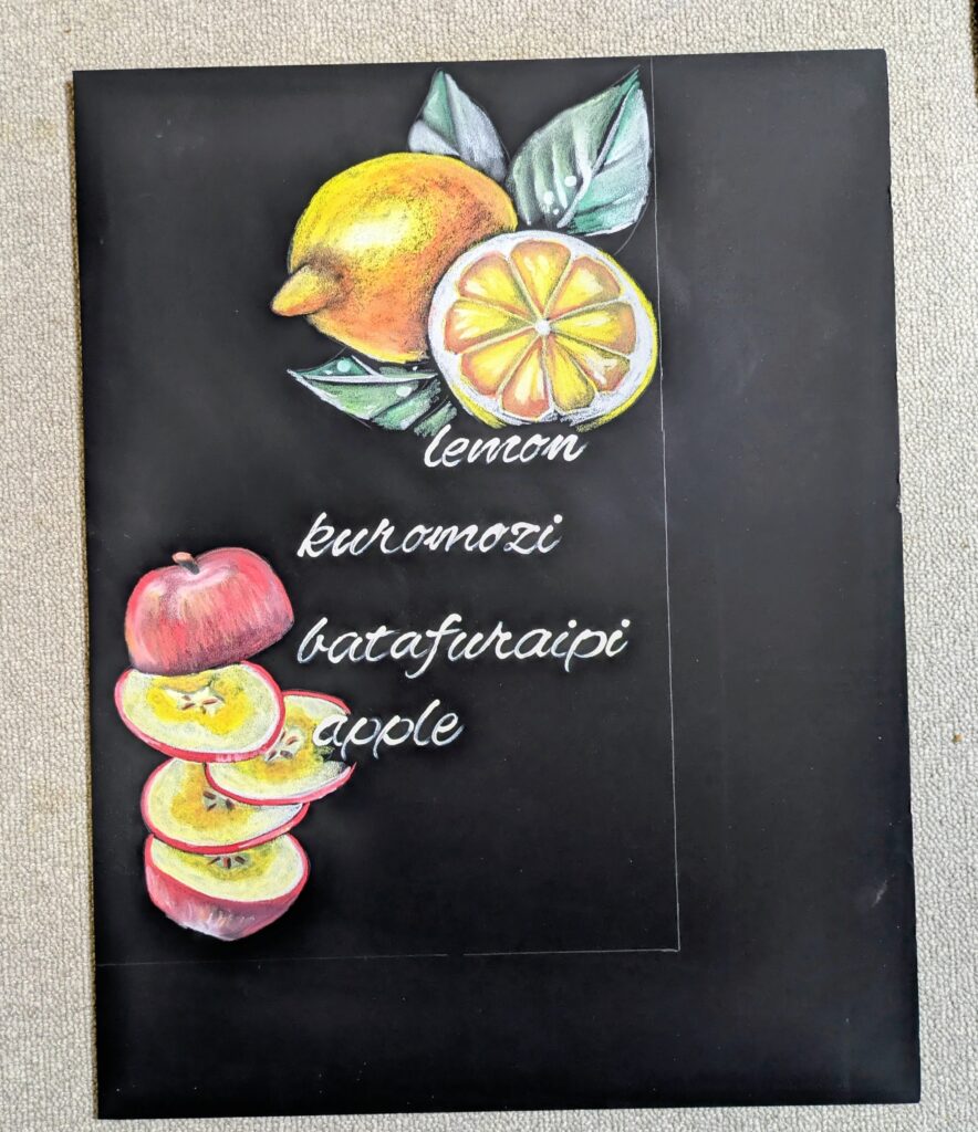 今月のチョークアートレッスンテーマは柿。柔らかな柿…