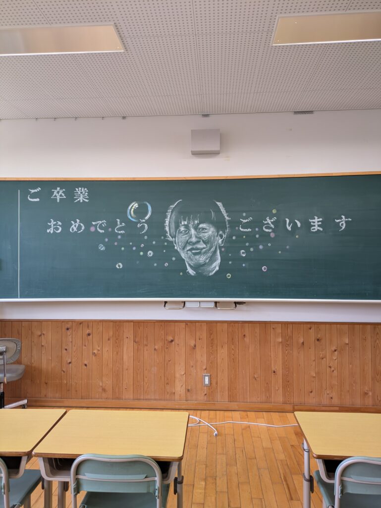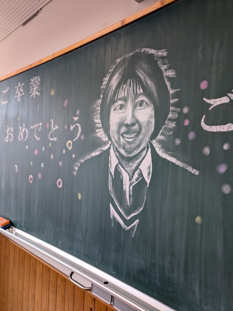 卒業式も終わり、黒板を元通りにする作業を行う為、再び学校を訪れた時